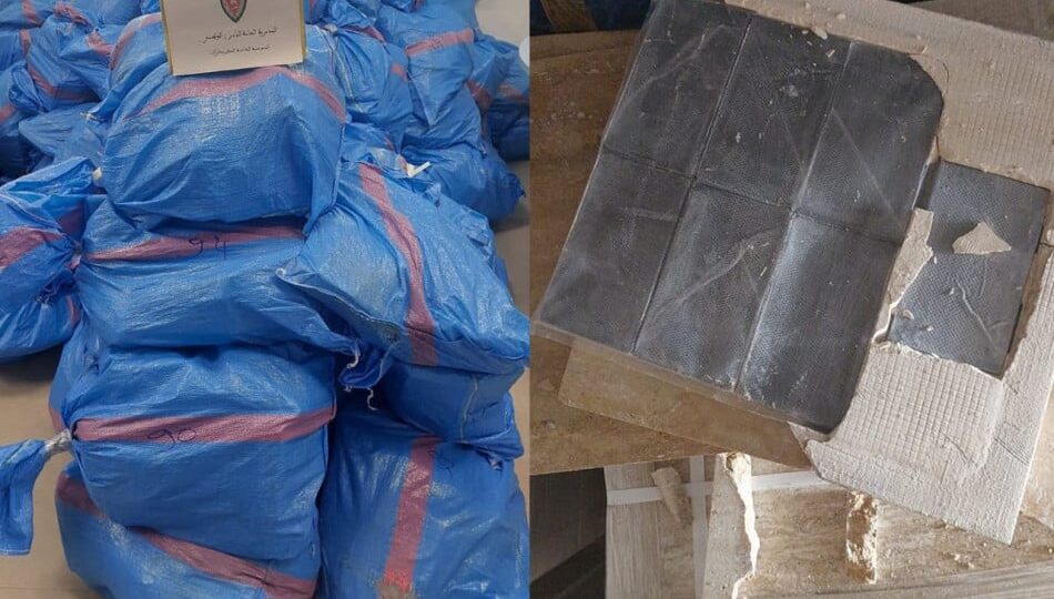 وذكر بلاغ للمديرية العامة للأمن الوطني أن عملية المراقبة الحدودية وإجراءات التفتيش التي شاركت فيها الكلاب المدربة للشرطة من ضبط شحنات المخدرات مخبأة بعناية في حمولة من الرخام الاصطناعي كانت على متن شاحنة تحمل لوحات ترقيم مغربية، والتي كانت متجهة صوب إحدى دول إفريقيا جنوب الصحراء، علاوة على ضبط سائقها وصاحب الشحنة البالغين من العمر 53 و43 سنة.