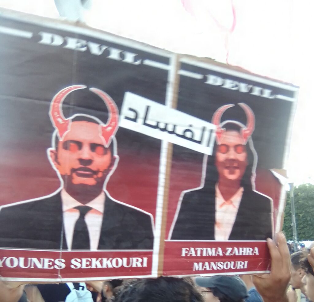 ورفع المحتجون خلال هذه الوقفة لافتات ورددوا شعارات تطالب بمحاسبة “المفسدين الذين يعرقلون تحقيق مطالب الشعب المغربي”.