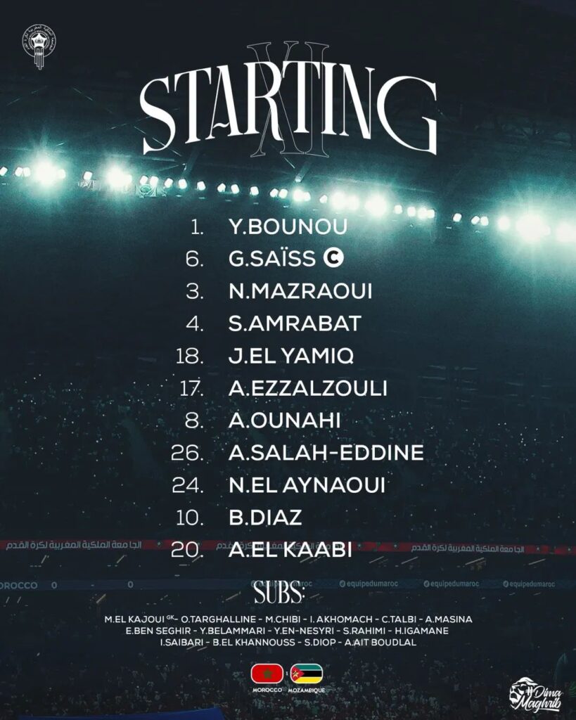 أعلن الناخب الوطني، وليد الركراكي، مدرب المنتخب الوطني المغربي الأول لكرة القدم، عن التشكيلة الرسمية التي ستخوض المباراة الودية أمام منتخب الموزمبيق، مساء الجمعة نونبر، على أرضية ملعب طنجة الكبير، استعدادا لنهائيات كأس إفريقيا للأمم 2025، التي ستحتضنها ملاعب المملكة بعد قرابة شهر من الآن.