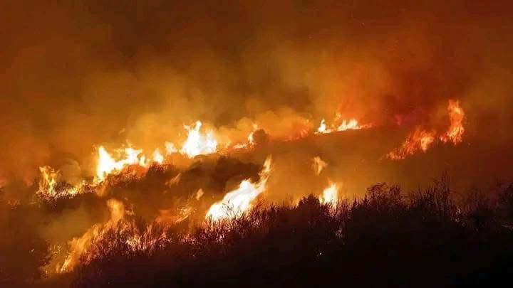 اندلع حريق مهول بغابة جبل أغاندرو بالقرب من دوار بني عيسى بجماعة عبد الغاية السواحل، إقليم الحسيمة مساء أمس الثلاثاء 14 يناير 2025.