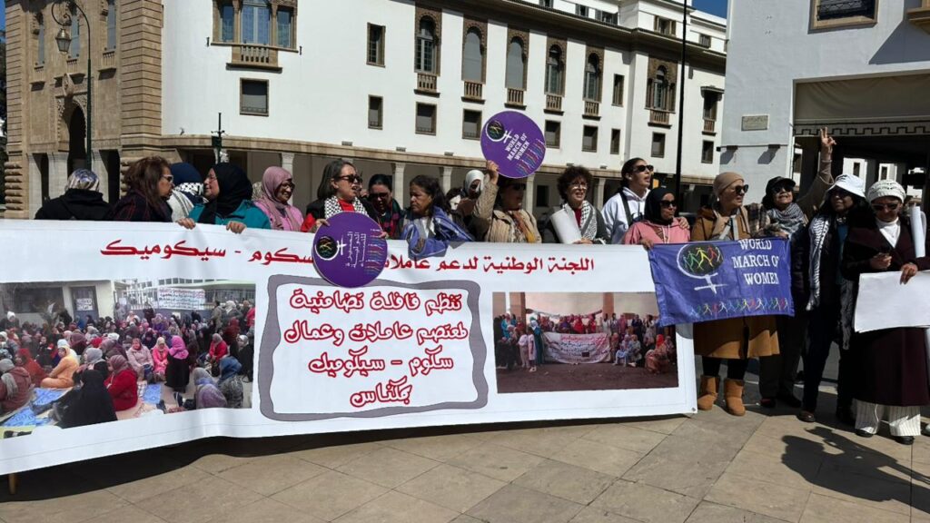 من جانبها، أوضحت خديجة عيناني، المنسقة الوطنية للجنة الوطنية لدعم عاملات وعمال شركة “سيكوم – سيكوميك”، أن حضور عاملات الشركة في وقفة اليوم يندرج في إطار مواصلة النضال من أجل استرجاع حقوقهن بعد الطرد الذي تعرضن له سنة 2021.